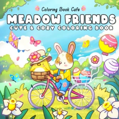 Meadow Friends: Cute & Cozy Coloring Book for Adults Teens: Whimsical Animal Friends Relaxing Scenes Stress Relief