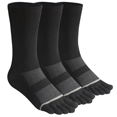 meaiguo Men's Toe Socks Cotton Crew Five Finger for Running 3 Pairs, Black/3 Pairs Size 7 12, One