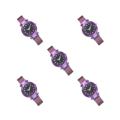 Mealoodiousmusea 5 Set Magnetic Buckle Watch Bright Watches Strong Suction Fashionable Wrist Alloy Case with Stainless Steel Strap Purple