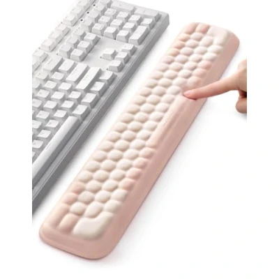 Ergonomic Wrist Support – The MEATANTY keyboard wrist rest is designed to keep wrists in a natural position, reducing strain, fatigue and improving comfort during long typing sessions. Soft Memory Foam Cushion – High-quality memory foam with +10% extra filling adapts to your wrists while remaining firm and supportive, providing lasting comfort. Breathable & Skin-Friendly – Covered with smooth Lycra fabric that feels silky on the skin and stays breathable and fresh, even after hours of work or gaming. Non-Slip Stability – The textured rubber base prevents the keyboard wrist support from slipping or moving on your desk, keeping it stable for reliable daily use. Stylish Dual-Tone Design – Available in elegant Champagne & White, Cream White & Rose Pink, and Papaya Yellow & Rose Pink, adding both comfort and a stylish touch to any desk setup.