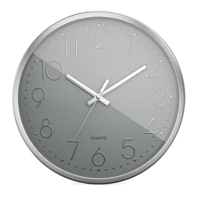 Mebus Wall Clock, Plastic Aluminium, Silver/Grey, 30 cm