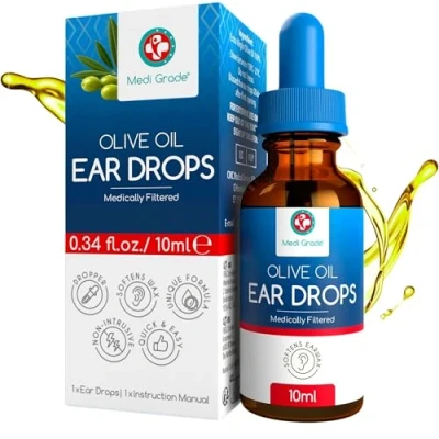 Medically Filtered Ear Drops for Wax - Filtered and formulated specifically for ear cleaner ear wax remover, Medi Grade olive oil ear wax drops provide a soft, safe and natural alternative to invasive ear cleaners tools, such as ear candles and cotton swabs Natural Ear Wax Softener – Using the pipette dropper, slowly apply our medical grade olive oil for ear wax into the ear canal. With regular use, this drug free ear drops for blocked ears will soften hard wax, helping it to drain naturally from the ear Safe and Highly Effective Ear Wax Softener - Don't be tempted to use olive oil from your kitchen as it may contain unsafe particles and impurities. Derived from 100% pure, triple-filtered olive oil for ears, this specialised ear oil to remove wax is the best solution for blocked ears and ear wax dissolver Works with Ear Irrigation and Ear Wax Removal Kits – Whilst our formulated Olive oil ear drops for wax removal are sold as a standalone product, designed to soften and remove wax naturally, it's no secret that earwax removal drops can also be used to supplement ear syringing kits Convenient Dropper & Travel-Size Bottle – Our Olive Oil Ear Drops are designed for effective ear wax removal, making them an excellent choice for addressing ear drops for wax concerns. Use day and night with this compact 10ml travel-size bottle to maintain clear and comfortable ears effortlessly with these reliable ear wax removal drops