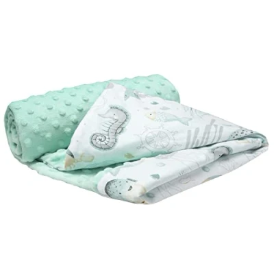 Medi Partners Baby Blanket Newborn Pram Soft 100% Cotton 75x100 Cot Toddler Comfort universal Cuddly Fluffy Crawling Plush bilateral Blankets (Ocean with mint Plush)
