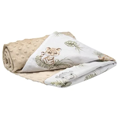 Medi Partners Baby Blanket Newborn Pram Soft 100% Cotton 75x100 Cot Toddler Comfort universal Cuddly Fluffy Crawling Plush bilateral Blankets (Safari with beige Plush)