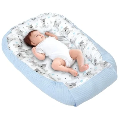 Baby nest - Perfectly surrounds the child, providing comfort and security. Babynest wraps the baby and limits their freedom of movement, so the newborn feels safe and secure, just like in the womb. Baby Nest will also work perfectly in a Moses basket. The Newborn Baby Nest interior is lined with soft cotton, providing softness and comfort to the baby, eliminating any back pain. The Babynest is finished with an exceptionally comfortable waffle-weave cotton. The sides of the baby nest are filled with hypoallergenic silicone balls. Raised edges ensure the child's safety. Parents can rest assured that the Babies won't be accidentally crushed. " The use of cords for size adjustment (100x60x15 cm) of the baby nest allows for perfect adjustment of the sleeping surface by pulling it down or loosening it. This allows the cocoon to "grow" with the child and can be used up to 7-9 months of age" " The babynest is lightweight and easy to transport, making it easy to take anywhere and use on vacation, while traveling, visiting grandparents, etc. It makes it easy to keep the baby's Bed clean and protect it from damage." ALL MATERIALS ARE OF THE HIGHEST QUALITY – The materials used to make the baby nest are Oeko-Tex 100 certified, meaning it can be used in contact with a child's sensitive skin. The babynest is hand-sewn in Poland, which clearly distinguishes it from cheap imported products.