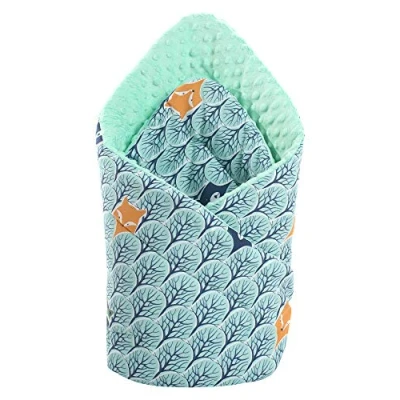 Medi Partners Swaddling Blanket 100% Cotton 75x75cm Double Sided Soft All Year Round Multifunctional Anti Allergic Babies (Forest with mint Plush)