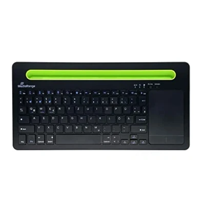 MediaRange, Bluetooth, compact multi pairing wireless keyboard with 78 keys and touchpad, QWERTZ (DE/AT/CH) layout, black/green