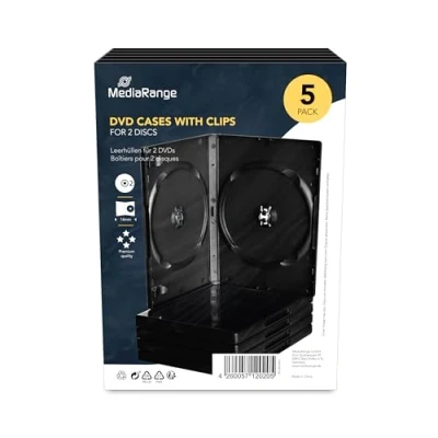 MediaRange DVD Case for 4 Discs 14 mm Black Pack of 5