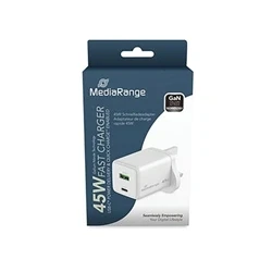 MediaRange GaN Fast Charge Adapter UK Plug 1xUSB C A 45W White