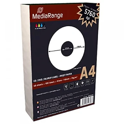 MediaRange MRINK131. Product colour: white. Labels per pack: 100 piece(s) Number of support sheets per box: 50 sheets Packaging type: box.