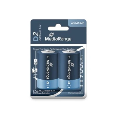 MediaRange Premium Alkaline Batteries, Mono DLR201.5V, Pack of 2