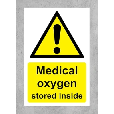 Medical oxygen stored inside Safety sign Self adhesive sticker Digitally printed and laminated for extra durability Remove backing film and apply to dry, smooth, oil free surface.