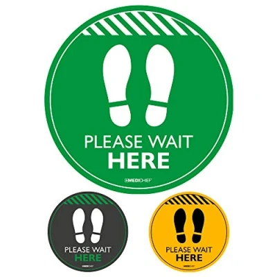 KEEPING CUSTOMERS & COLLEAGUES SAFE: These 'Please Wait Here' floor decals are designed to stand out visually, helping your customers & colleagues to keep socially distanced in a controlled manner. MANUFACTURED IN THE UK: Coming from a British brand, these floor stickers from Medichief are manufactured in the UK. HIGHLY DURABLE EMBOSSED PVC: These self-adhesive floor stickers are made of high durability PVC material, embossed with a super-hexagonal structure for superior anti-slip protection. SELF ADHESIVE BACKING FOR EASY APPLICATION: These floor stickers have a peelable self-adhesive backing, making them easier to apply to commercial tile floors, sealed concrete, sealed wood & ceramic tile surfaces. ANTI SLIP CERTIFICATION: These floor warning stickers from Medichief carry R10/V DIN 51130 anti-slip certification. This means that they are suitable for environments that are occasionally wet and provide ample slip protection for most domestic/commercial applications.