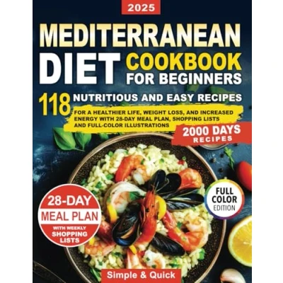 Mediterranean Diet Cookbook for Beginners: 118 Nutritious and Easy Recipes a Healthier Life, Weight Loss, Increased Energy With 28 Day Meal Plan, Shopping Lists Full Color Illustrations