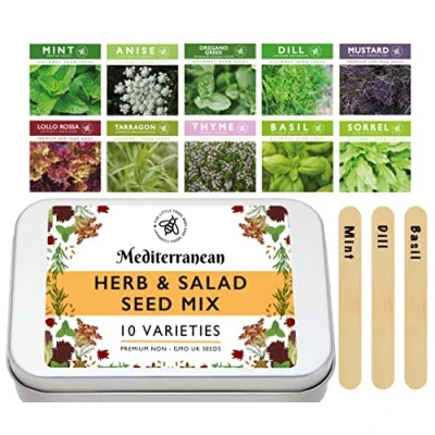 10 MEDITERRANEAN HERB VARIETIES - Mustard red frills, greek oregano, anise, thyme, dill, mint, salad bowl red, lollo rossa, tarragon & sorrel, a bigger variety of seeds for you to plant! SAVE YOUR SEEDS -You can save Mediterranean Herb seeds, they are not only guaranteed to taste better but you can also save the seeds produced each year so they can be planted again, saving money. GROWING GUIDE - Our Vegetable Growing Guide is included in this pack, so even if you’re a beginner, you’ll have no problem getting started, with these easy to use instructions showing you how to sow, when to harvest and the best planting companions. EASY TO SOW: Whether in a vegetable bed in the garden or allotment, or a plant pot indoors or on a balcony, you will find easy to use instructions in our growing guide on how to sow and harvest and the best planting companions. FRESH! Packed in 2025 and ready to transform your meals with pure HomeGrown flavours