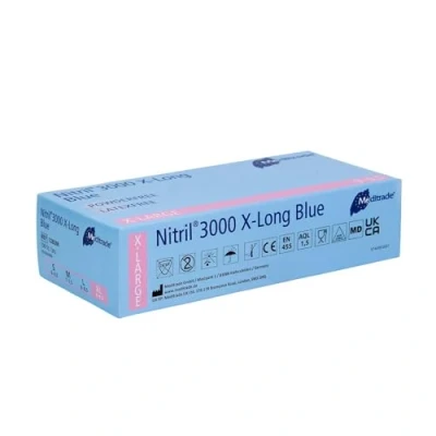 Meditrade Nitrile 3000 X Long Blue Examination Glove In Pure Powder Free Small (Size 6 6.5), Pack of 100