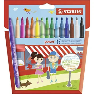 Medium Fibre Tip Pen STABILO power Pack of 15 Assorted Colours
