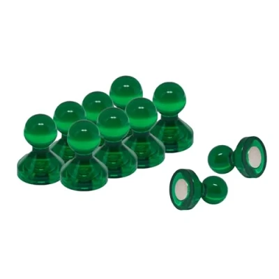 Medium Green Acrylic Push Pin Magnet for Fridge, Whiteboard, Noticeboard, Filing Cabinet 15mm dia x 21mm tall Pack of 10