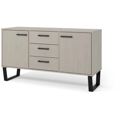 General description The Vigo Grey range combines real wood with a rich grey wax and metal to bring a casual industrial styled look to your home. The medium sideboard features simple lines and black stove painted metal legs that blend perfectly with the cabinets, which are finished with a grey washed wax finish, allowing the natural grain and characteristics of the wood to show through. This sideboard, with 2 doors and 3 drawers, serves as a great focal point for your living or dining room while offering versatile storage space. Technical specifications Dimensions: (W) 130.6cm (D) 43cm (H) 73.6cm Material: Solid wood with grey wax finish and metal legs Number of doors: 2 Number of drawers: 3 Compatibility and accessories Adjustable shelves in cupboards Adjustable metal hinges on doors