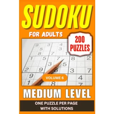 Medium Sudoku for Adults: Puzzle Book. 200 Large Print Puzzles. One Per Page. Solutions Included. Volume 6. (Medium Level Puzzles Adults)