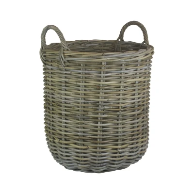 Medium Tall Round Fireside Grey Rattan Log Basket