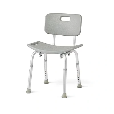 Medline Bath Chair with Back, Shower has Height Adjustable Legs, Tool Free Assembly, Seat Suction Cup Feet, Gray