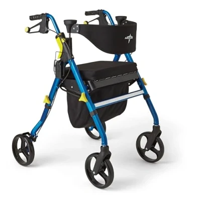Medline Premium Empower Folding Mobility Rollator Walker with 8" Wheels, Blue