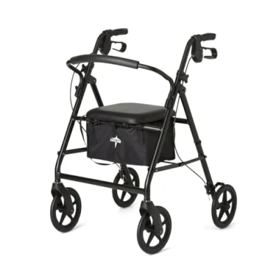 Medline Standard Steel Folding Rollator Walker with 8" Wheels, Black