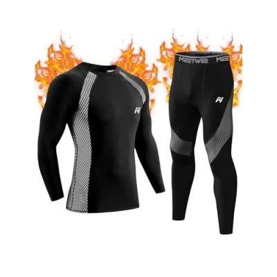 MeetHoo Men's Thermal Underwear Set, Winter Base Layer Compression Suit Long Johns for Running Skiing Black