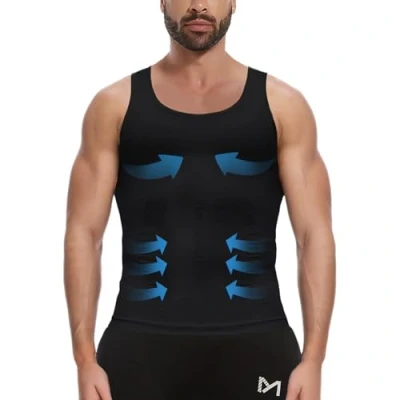 Amazon Quick-drying fabric. MEETWEE Men's Tank Top made of 90% nylon, 10% spandex, absorbs sweat and breathable, does not feel sticky and gets cool all day long. Lightweight, smooth and soft material, offers you a comfortable fit wearing experience. Body Shaper Undershirt, enhance pressure on belly, shape your body in few seconds, get slimmer. Strengthen back support, reduce hunchbacked, correct the posture. Waist Seamless Design. Fits your body well, 160D elastic band to wrap your waist, shape your body. High elasticity, 3D cutting, show your muscle line and increase flexibility. High-quality flat suture process, durable and skin-friendly fabric. Machine wash. We offer different size and color for you to choose, MEETWEE men fitness top character your style with clean lines, we believe you will love this. Match your style, fits any occasions. MEETWEE Sleeveless Muscle Compression Shirt perfect for gym, sports, outdoor or indoor, such as basketball, tennis, training, running, hiking, horseback riding, climbing, surfing, jogging, etc.