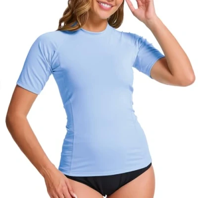 MEETWEE Women's Surf Rash Guard Sun Protection Swimsuit UV Shirt UPF 50+ Short Sleeve Swim Top Quick Drying Swimming for Water Sports Brilliant Blue
