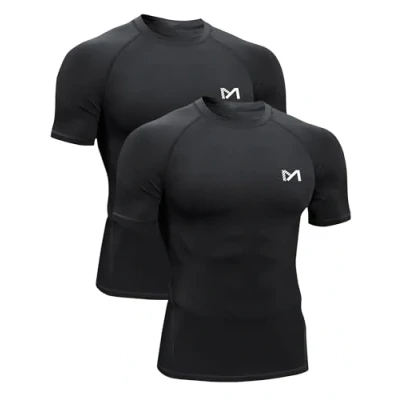 MEETYOO Mens Compression Shirt, Black+black, XXL UK