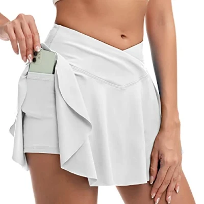 Golf Skirts With Built In Shorts: Double-layer design of this sports skirt for ladies with no see-through guarantee. Providing maximum coverage and secure support when you are enjoying the sport. Also the secure Design with skirt outer & shorts inter makes you feel free to sport freely without worry. Multi-pocket tennis skirt. This tight skirt has three useful pockets, one on each side of the tennis skirt for your cell phone and tennis balls. The pockets have side straps for golf spikes. Surprisingly, there is also a hidden pouch behind the waistband for carrying your credit cards, keys, or any other odds and ends. High Waisted & Fashions. The women's high waisted sports skirt has a thin elastic waistband that hides your tummy and moves with your body without worrying about it falling off. And can easily be worn with any type of top. Breathable & Dry Quickly: 90% Polyester + 10% Spandex athletic shorts for women, lightweight and breathable, wicks away moisture quickly and keep you dry and cozy. Making you more attractive when you move because of its super lightweight. Great for Many Occasions: The women's active skirts are perfect for daily wear and exercise. You can wear it for outdoor activities and active sports like tennis, golf, volleyball, badminton. The high waist skirts are perfect to pair with T-shirt, blouses, and any other tops.