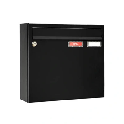 MEFA Sonata Sonate 132 Letterbox with Name Plate (Colour, Postbox Lock, Size 330 x 370 108 mm) 132220, deep Black, 330x370x101