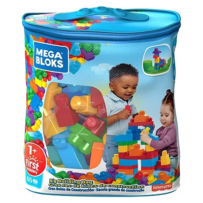 MEGA BLOKS big building Bag set with 60 and colorful blocks, 1 storage bag, toy gift for ages up, DCH55