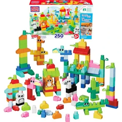 MEGA BLOKS Fisher Price Toddler Building Toy, Animal Blocks with 250 Pieces and Reusable Storage Bag, Kids Ages 1+ Years, JCF93