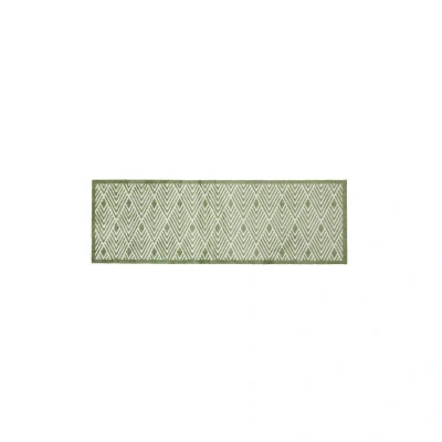 General description The JVL Mega Runner is perfect for hallways, entrances, doorways, porches, or boot rooms, designed to keep your floors cleaner for longer. Its soft fibres effectively trap dirt and dust from muddy boots, shoes, or paws, while the absorbent pile soaks up moisture to prevent wet floors, protecting your carpets and flooring. When it starts to look dirty, simply wash it at 30°C, and it will look as good as new. Technical specifications Dimensions: 57x150 cm Material: 100% polyamide pile Usage Ideal for high-traffic areas such as hallways, entrances, doorways, porches, and boot rooms Machine washable at 30°C for easy maintenance Other information Stylish contemporary geo pattern in sage green Slip-resistant backing made from latex to prevent movement Matching mat available for a cohesive look