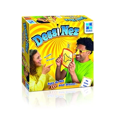 Draw a card and draw a "PIF" drawing! With Dessi'Nez, this expression is to be taken literally because you will have to draw with your nose! Put on the glasses pen holder, pull a card, fix it on the drawing board. And draw every word on the list to make them guess one by one to the other players. It looks easy, but you will soon see that drawing only with your nose is not as simple as one thinks. Game from 7 years old Contents: 1 x pen holder glasses with elastic band, 1 x erasable board, 1 x marker, 45 cards, 1 x eraser, 1 x instructions., Manufacturer: Megableu