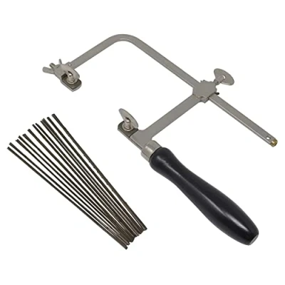 German Style heavy duty & Adjustable for various blade lengths Jeweler's Saw Frame with 144 Assorted Blades For jewelry making, Name Plate's. Solder plate's. woodworking, crafts, hobbies & more. With thumbscrews that firmly secure the blades into the frame This saw allows you to work with various blade lengths(3-14.4cm)