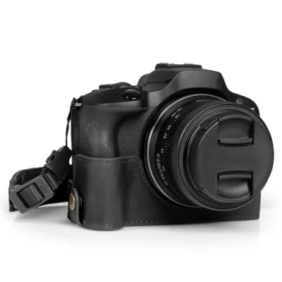 BESPOKE FIT – The MegaGear Premium Genuine Leather Camera Case with Battery Access is specifically tailored using high quality genuine leather for the Canon EOS R100 models for precision fit and coverage. ENHANCED PROTECTION – Due to its rugged construction and tailored fit this case provides maximal external protection for your camera against bumps, dust, damage and shock. The soft internal layer of padded fabric keeps your LCD and lens safe from scratches, along with protecting your camera body. FUNCTIONAL ACCESSIBILITY – The "Ever Ready" is designed for efficient photography and accuracy. You can access all peripheral ports, card slots, buttons, and the battery without removing your case, and attach it to a tripod with the case on! CONVENIENT – Convenience features allow rapid use of your camera when needed, taking that impulsive shoot is as easy as flipping the top cover open. Perfect for functional travel and outdoor use. STYLISH DESIGN – Whether you are a beginner or a seasoned, professional photographer, you will want these lightweight leather cases at your side, combining exquisite, ageless leather style with rugged protection.