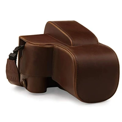 MegaGear Faux Leather Case Compatible with Nikon Coolpix P950 Dark Brown