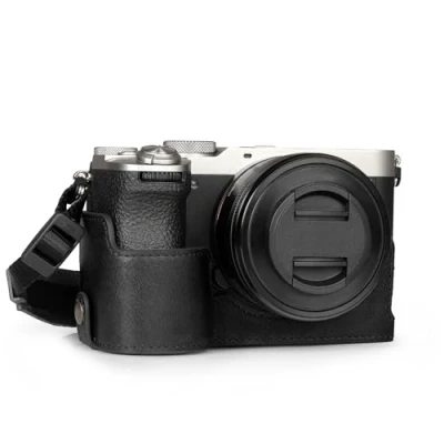 MegaGear Genuine Leather Half Camera Case for Sony Alpha a7C Mark II Stylish and Protective (Black)