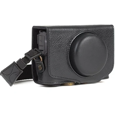 MegaGear MG1176 Canon PowerShot SX740 HS, SX730 HS Ever Ready Genuine Leather Camera Case with Strap Black