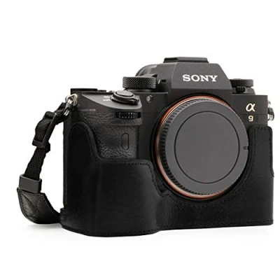 MegaGear MG1243 Sony Alpha A7RIII, A9, A7III Ever Ready Genuine Leather Camera Half Case and Strap Black