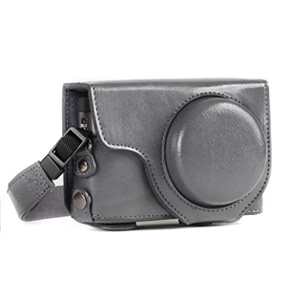 MegaGear MG1261 Ever Ready Leather Camera Case compatible with Panasonic Lumix DC TZ95, TZ90 Gray