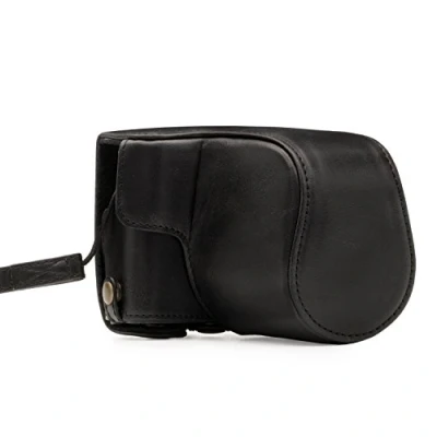 MegaGear MG1325 Ever Ready Leather Case and Strap with Battery Access/15 45 mm Lens for Canon EOS M100, M200 Camera Black