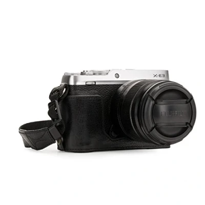 BESPOKE FIT – The MegaGear Premium Genuine Leather Camera Half Case with Battery Access is specifically tailored using high quality leather for the Fujifilm X-E3 models for precision fit and coverage. FUNCTIONAL ACCESSIBILITY – The "Ever Ready" is designed for efficient photography. You can access all peripheral ports, card slots, buttons, and the battery, and attach it to a tripod. ENHANCED PROTECTION – Due to its rugged construction and tailored fit this case provides protection for your camera body against scratches. CONVENIENT – Convenience features allow rapid use of your camera when needed. Perfect for functional travel and outdoor use. Fujifilm X-E3 Camera Cases
