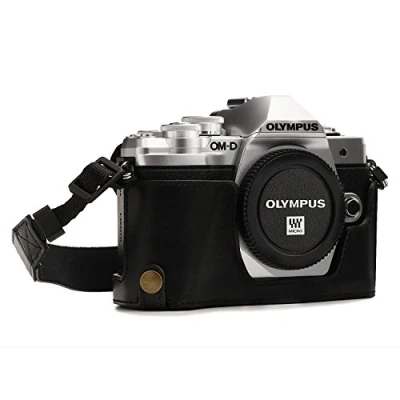 BESPOKE FIT – The MegaGear Premium Leather Camera Half Case with Battery Access is specifically tailored for the Olympus OM-D E-M10 Mark III for precision fit and coverage. FUNCTIONAL ACCESSIBILITY – The "Ever Ready" is designed for efficient photography. You can access all peripheral ports, card slots, buttons, and the battery, and attach it to a tripod. ENHANCED PROTECTION – Due to its rugged construction and tailored fit this case provides protection for your camera body against scratches. CONVENIENT – Convenience features allow rapid use of your camera when needed. Perfect for functional travel and outdoor use. Olympus OM-D E-M10 Mark III Camera Cases