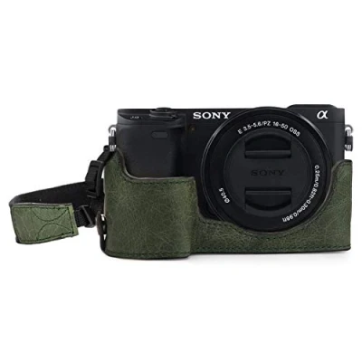 MegaGear MG1644 Ever Ready Genuine Leather Camera Half Case Compatible with Sony Alpha A6100, A6400 Green