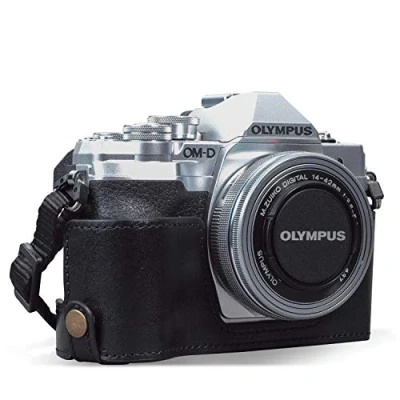 MegaGear MG1934 Ever Ready Genuine Leather Camera Half Case compatible with Olympus OM D E M10 Mark IV Black